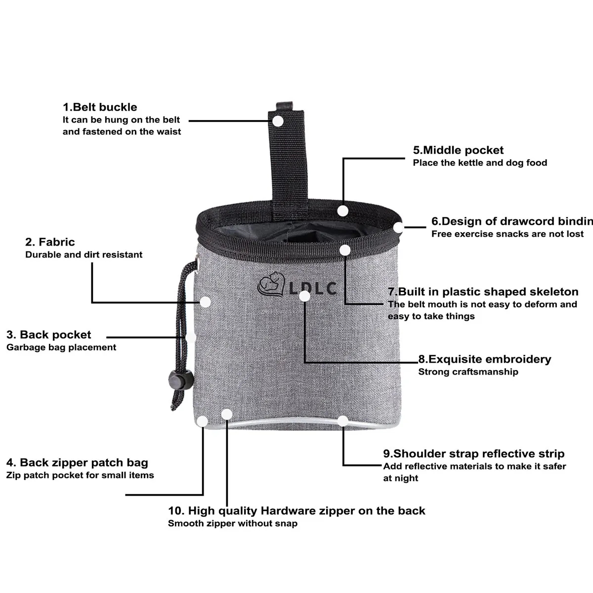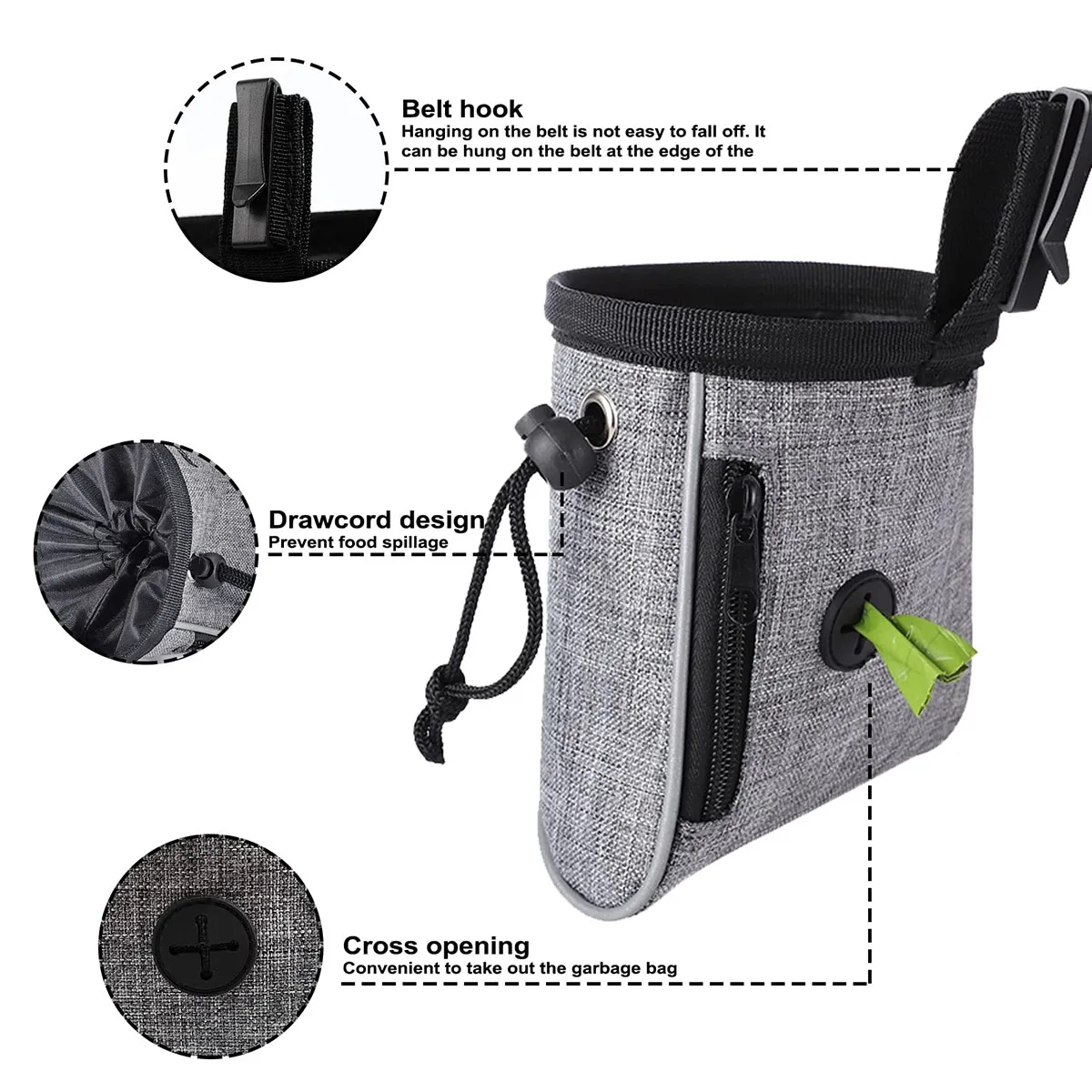 Additional InformationDog Treat Bag, Dog Food Pouch with Adjustable Waistband, Waterproof Puppy Treat Bag Hands Free Pet Treat Bag for Dog Training Walk