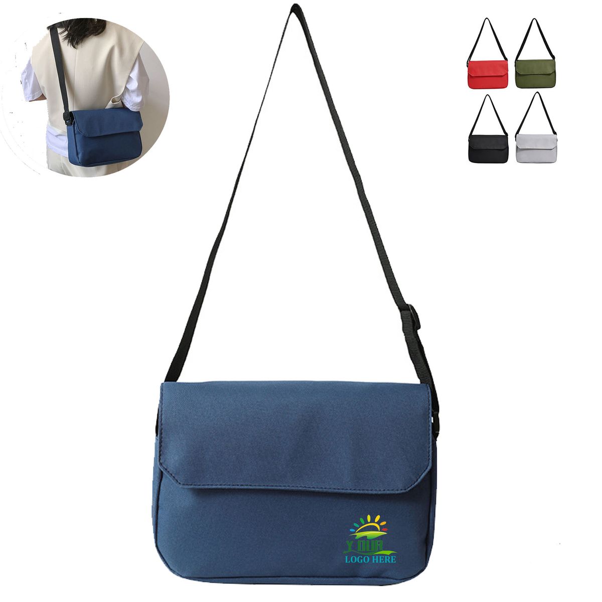 Crossbody bag is made from lightweight nylon with a polyester lined interior. Features a comfortable, adjustable shoulder strap for stylish and easy carrying. Wide opening and quick magnetic closures make it convenient to access items on the go. Multiple pockets provide ample space for daily essentials like wallets, keys, and phones. Custom imprints can turn this handy bag into a classic promotional tool, good for academia and corporate events, ideal for daily trips or travel.